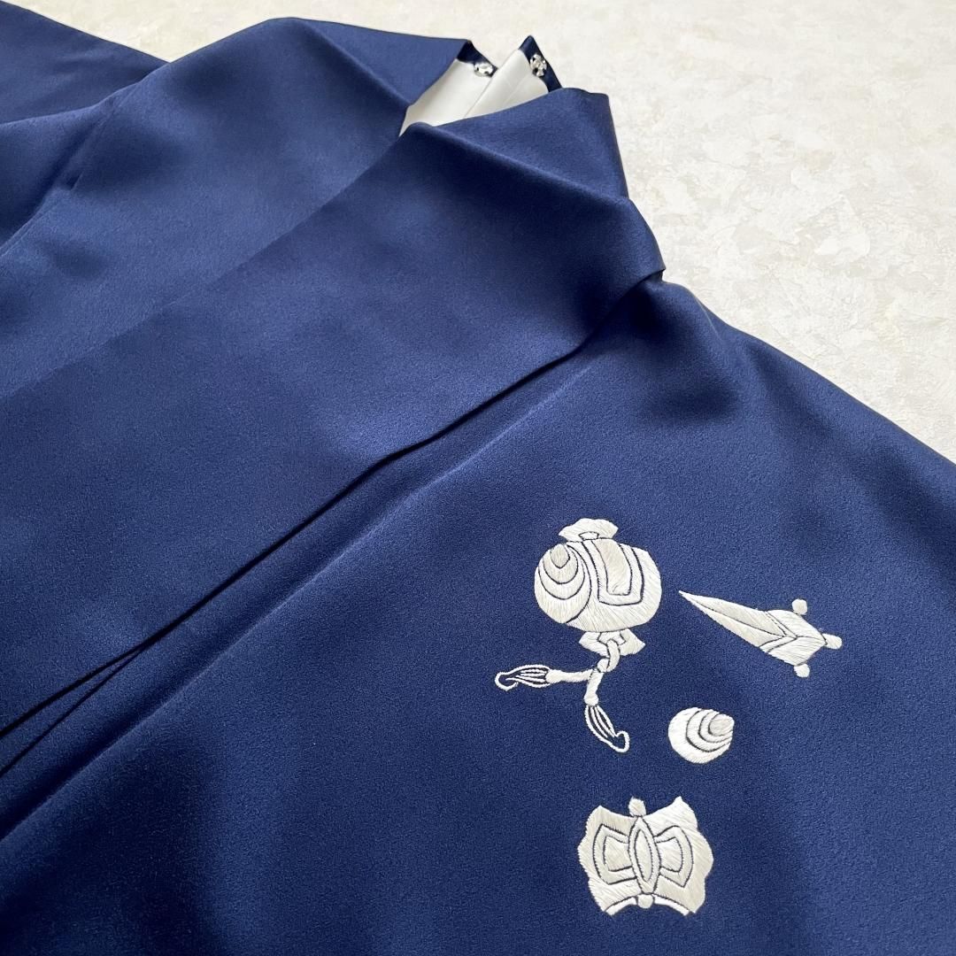 藍色に、潔く白のみの刺繍で宝物が散りばめられた訪問着です。